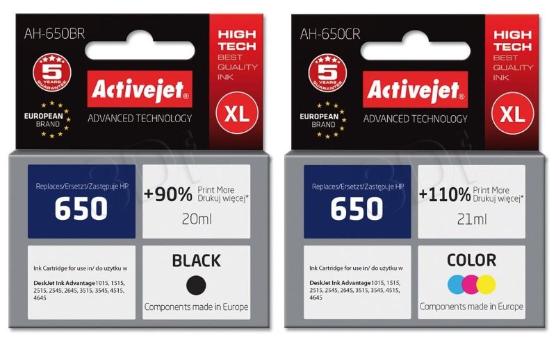 TUSZ ACTIVEJET HP 650 BLACK + KOLOR AH-650CR 650BR