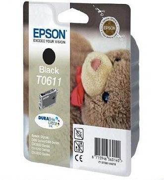 Epson wkład, atramentowy DURABrite Ultra Ink Epson T0611. Tusz ten pozwala uzyskać wspaniałe wydruki o żywych i trwałych kolorach. Dzięki jedynemu w swoim rodzaju atramentowi Epson DURABrite Ultra można uzyskać na niemal każdym papierze wysokiej jakości wydruki.