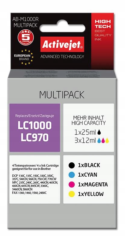 TUSZE ACTIVEJET BROTHER LC1000 CMYK 4szt AB-M1000R