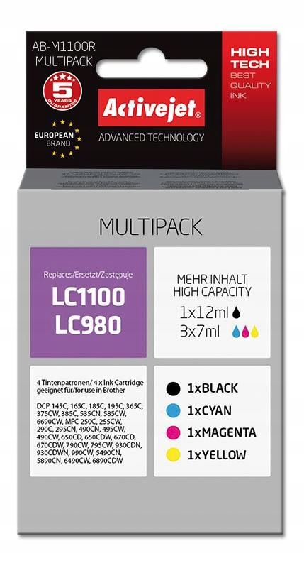 Tusz Activejet AB-M1100R (zamiennik Brother LC1100/980; Premium; 1 x 12 ml, 3 x 7 ml; czarny, czerwony, niebieski, żółty)