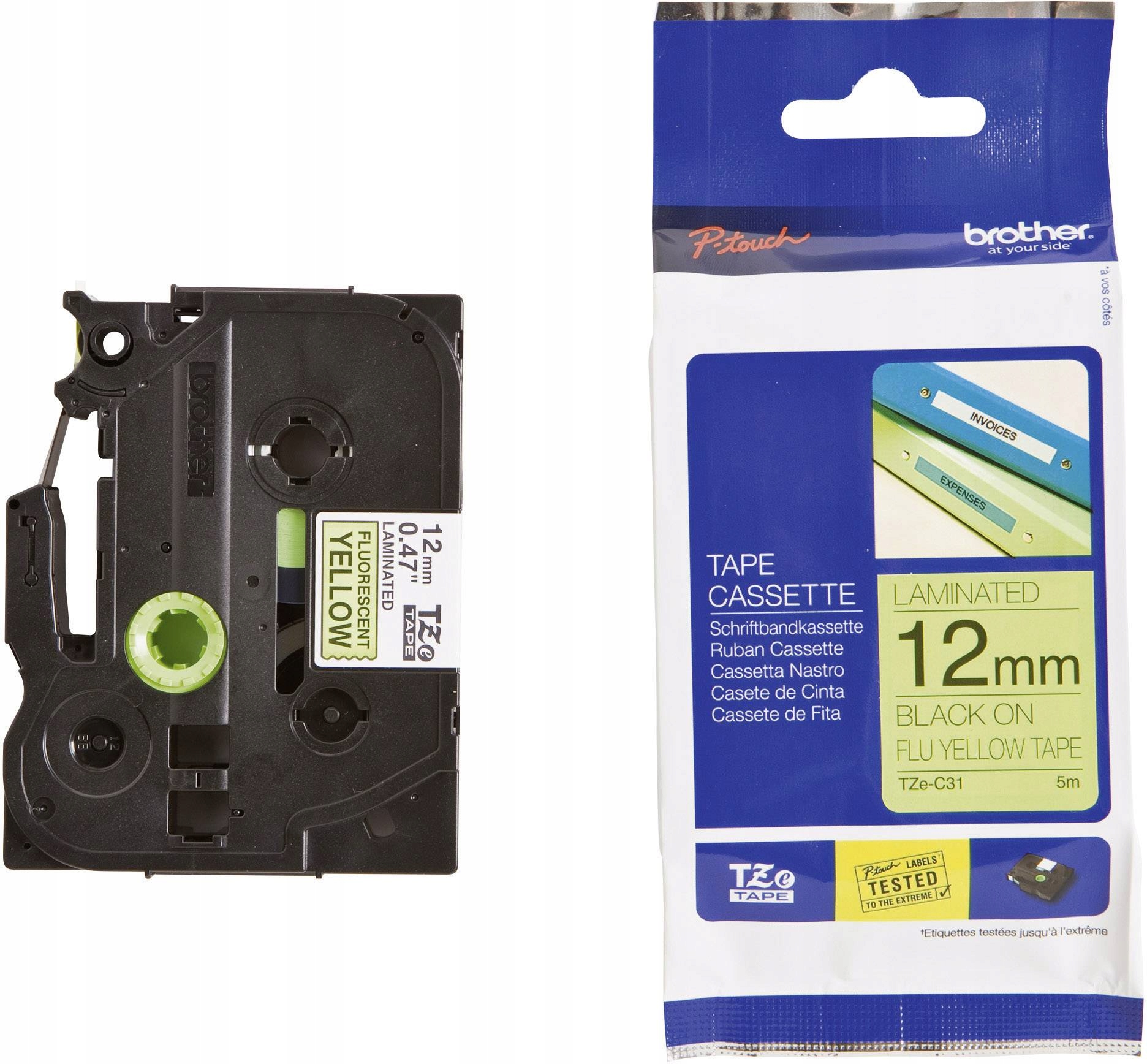 Taśma Oryginał BROTHER TZC31 TZe-C31 12mm 5M FLUO Black on Yellow