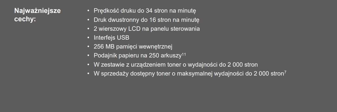 - Standardowy toner: TN-B023 - 2,000 stron (*7)