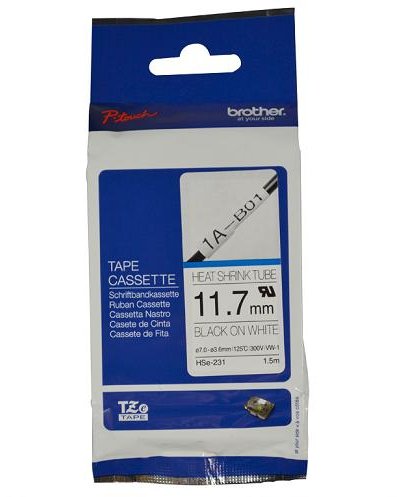 Producent BrotherBrother oryginalny taśma do drukarek etykiet, Brother, HSE-231E, czarny druk/biały podkład, 1.5m, 11.2mm