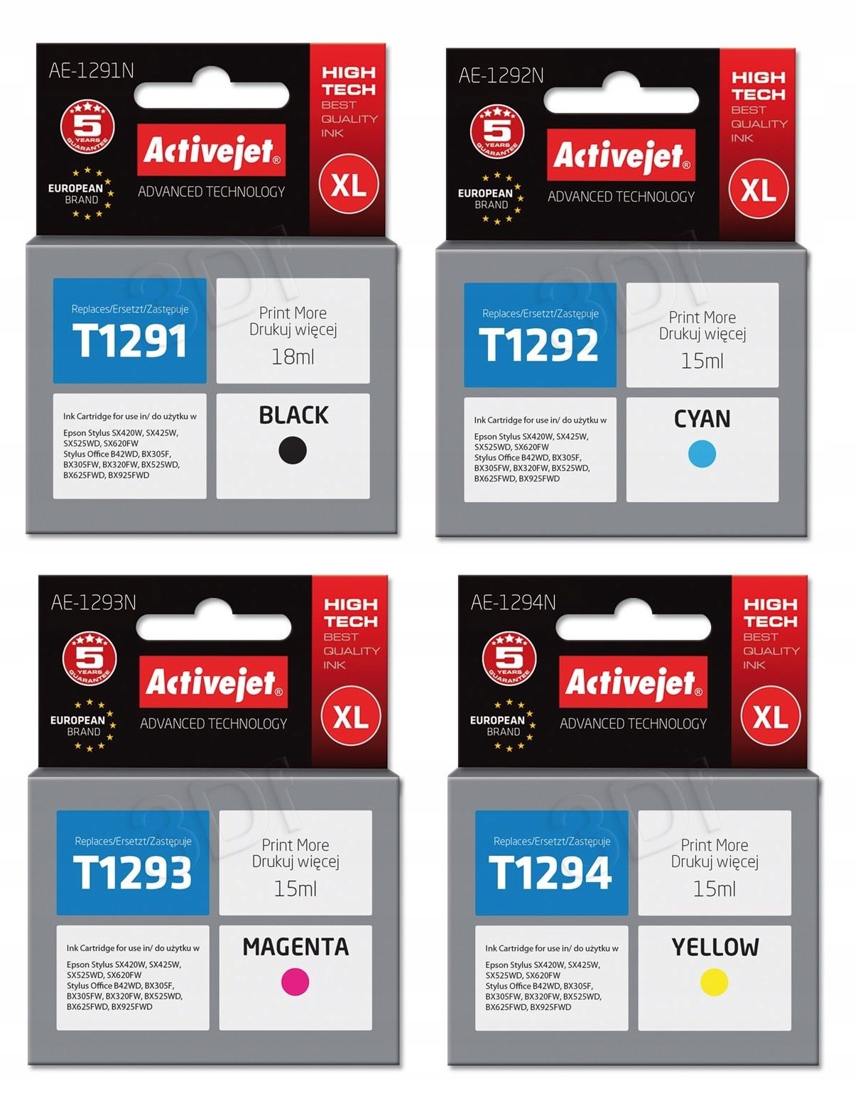 TUSZE ACTIVEJET EPSON T1295 AE-1291N 2 3 4 4szt