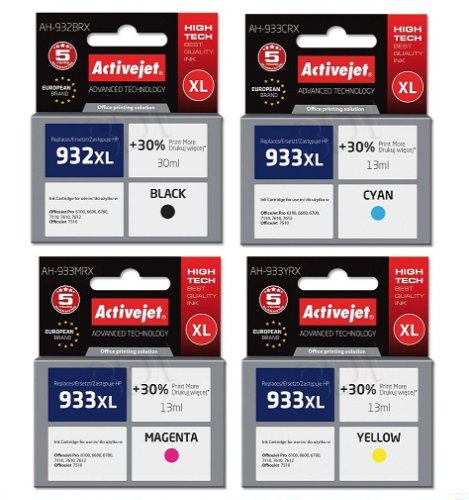 TUSZE ACTIVEJET HP 932XL BLACK 933XL CMY KOMPLET